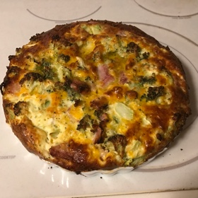 Bake in preheated oven for 50 minutes, until eggs are set and top is golden brown. Put a baking pan on the rack below the quiche dish to catch any drips.